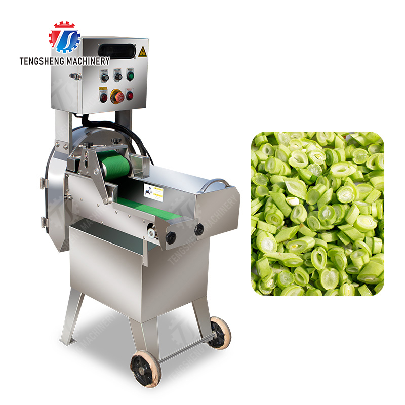 Η ενιαίος-επικεφαλής φυτική τέμνουσα μηχανή TS-Q115 έχει το διπλό σχέδιο μετατροπής συχνότητας, το οποίο μπορεί να ρυθμίσει την ταχύτητα της ζώνης και της λεπίδας για να ελέγξει ανά πάσα στιγμή το τέμνον μέγεθος του προϊόντος. Το πιάτο ολόκληρης της μηχανής αποτελείται από το ανοξείδωτο SUS304, το οποίο είναι υγιεινό, όμορφο και ανθεκτικό. Το πλαίσιο πορτών απαλλαγής είναι εξοπλισμένο με έναν διακόπτη μικροϋπολογιστών για την ασφαλή λειτουργία.