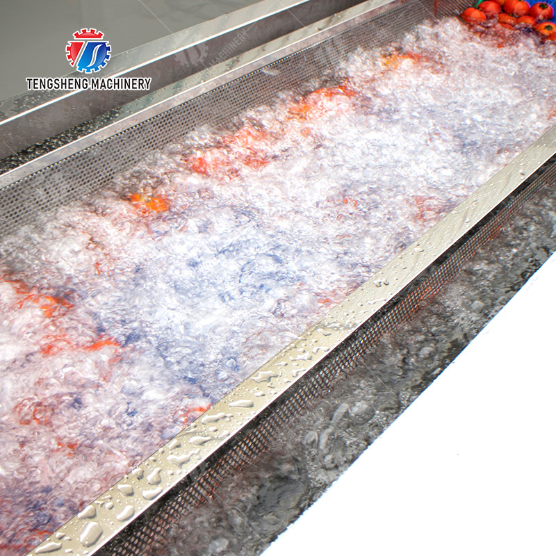 Αρχή εργασίας: Η καθαρίζοντας μηχανή φυσαλίδων χρησιμοποιεί υψηλό αέριο για να παραγάγει τη βράζοντας, κυκλοφορώντας υδραντλία που κάνει σερφ και τριπλός καθαρισμός ψεκασμού υψηλού νερού ανύψωσης. Μπορεί αποτελεσματικά να χωρίσει το ίζημα και τις ακαθαρσίες στα λαχανικά. Ο όγκος παροχής νερού στη διαδικασία υψηλού ψεκασμού είναι διευθετήσιμος, το οποίο είναι κατάλληλος για τους πελάτες να ρυθμίσουν ελαστικά σύμφωνα με το φυτικούς όγκο και την καθαρότητα.